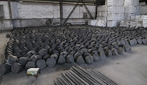 擋渣塞為一類似陀螺形并帶有一直徑較小的導(dǎo)向桿的耐火材料制品。因其投放準(zhǔn)確率高,擋渣效果好,出鋼時能破壞鋼水渦流,減少卷渣,有效地提高鋼水純凈度,減少了鋼水回磷,目前被廣泛應(yīng)用。